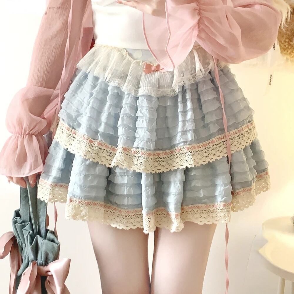 女性のための甘いロリータレースのケーキスカート,ヴィンテージ,エレガント,aライン,ミニスカート,韓国のファッション,プレッピースタイル,プリーツ,ピンク,2024 T240925141531_03