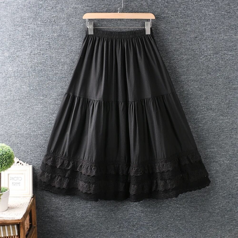 女の子のための綿の妖精の空中ブランコスカート,基本的なレースのロリータ,カワイイ,新しい T240925141541_01