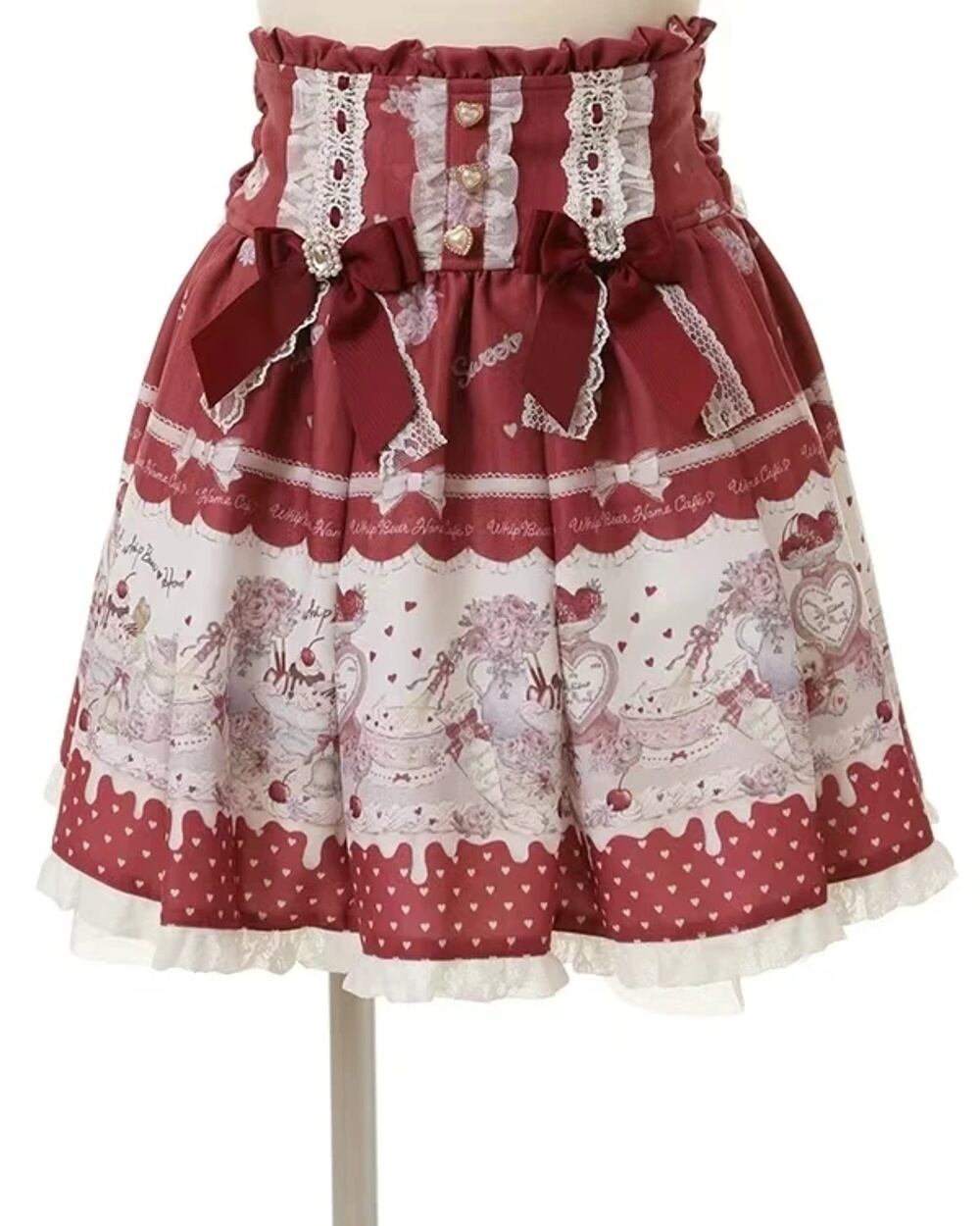 女性のためのかわいいクマのプリントボウスカート,ハイウエストの短い空中ブランコスカート,ロリータスタイルの女性のラインストーンボウ,和風 T240925141607_02