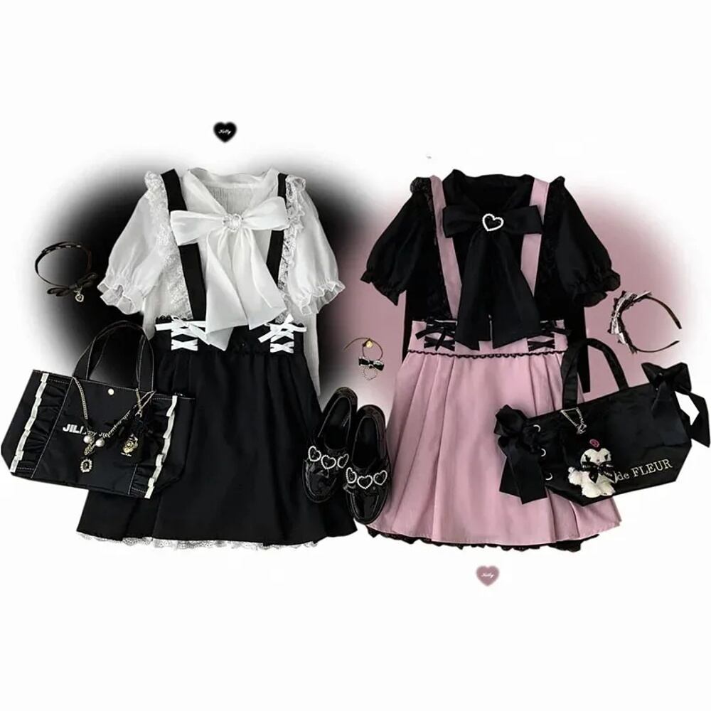 日本のロリータリボンリボン,ショートスカート,ストラップ付き,女の子用,フレア,キュート,ブラック,ピンク,新品 T240925141621_03