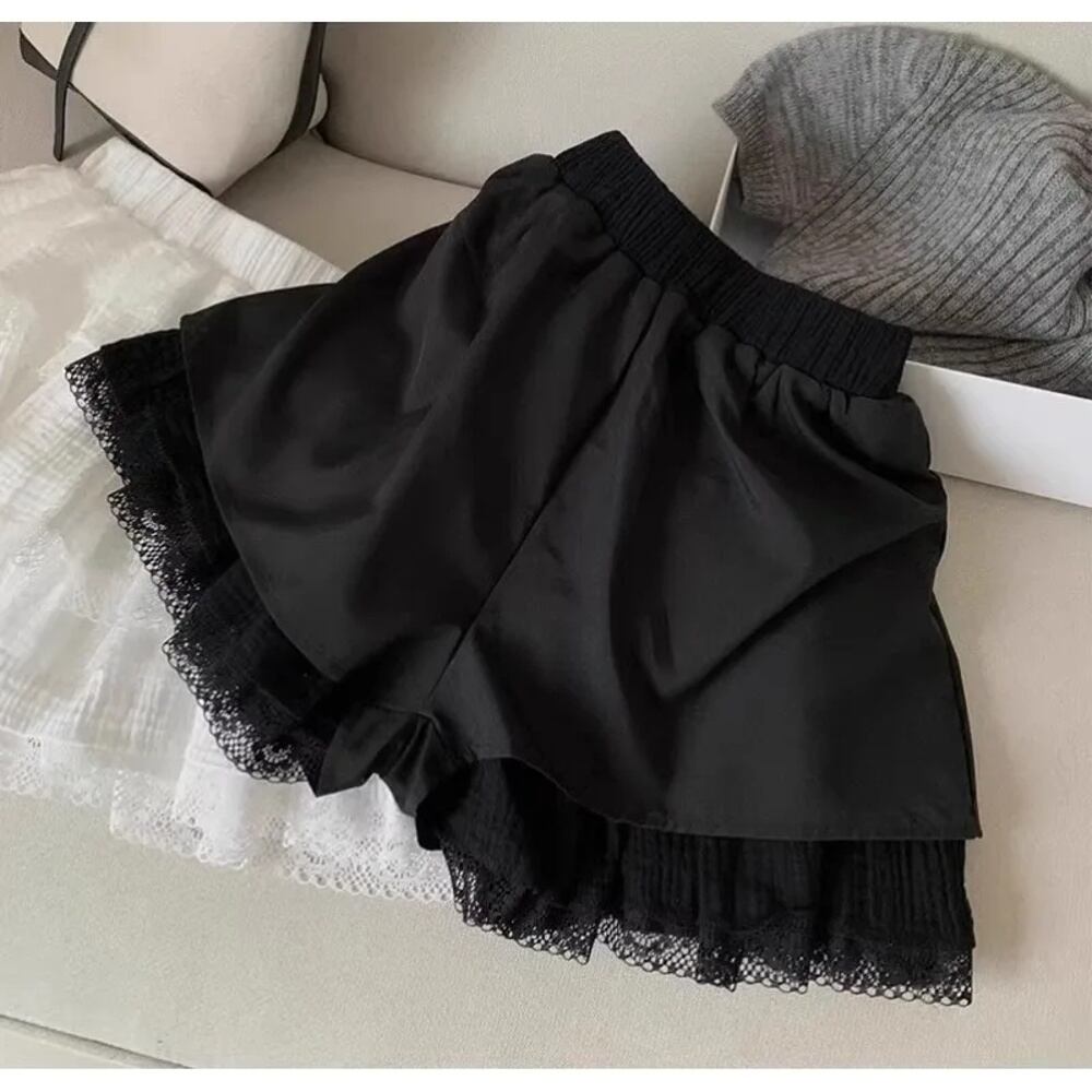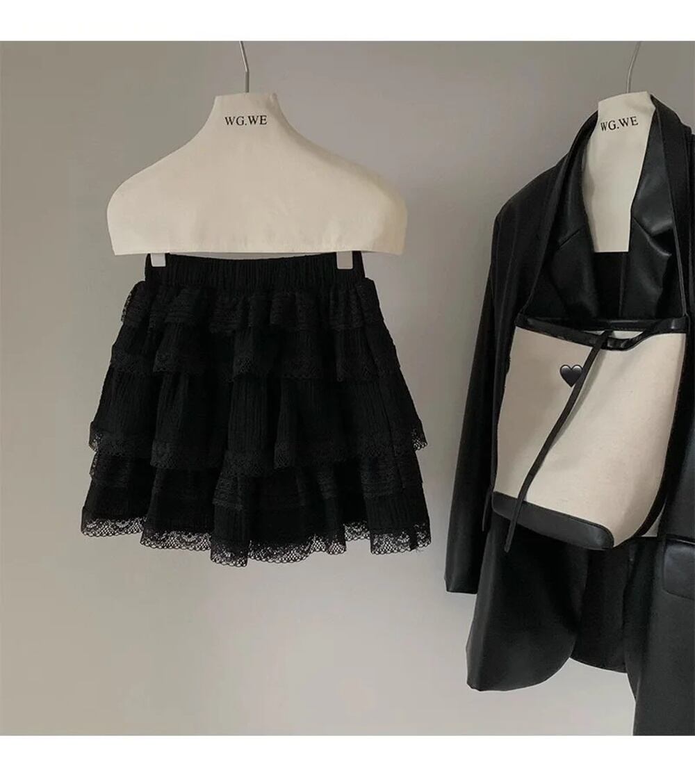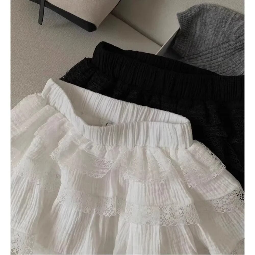 女性用ショートレースケーキスカート,黒と白のカジュアルレイヤードスカート,空中ブランコスカート,春と夏の原宿ロリータミニフリルスカート T240925141648_01