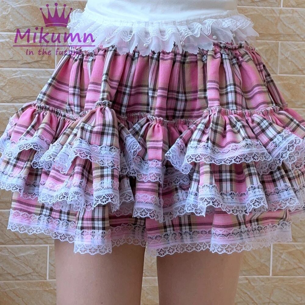 Mikautumn-女性用の市松模様のレースアップクロスレースエプロンショートスカート、カワイイ、ゴシック、ロリータ、ゴシック、パンク、女の子、ケーキ、ボールガウン、y2k T240925141730_03
