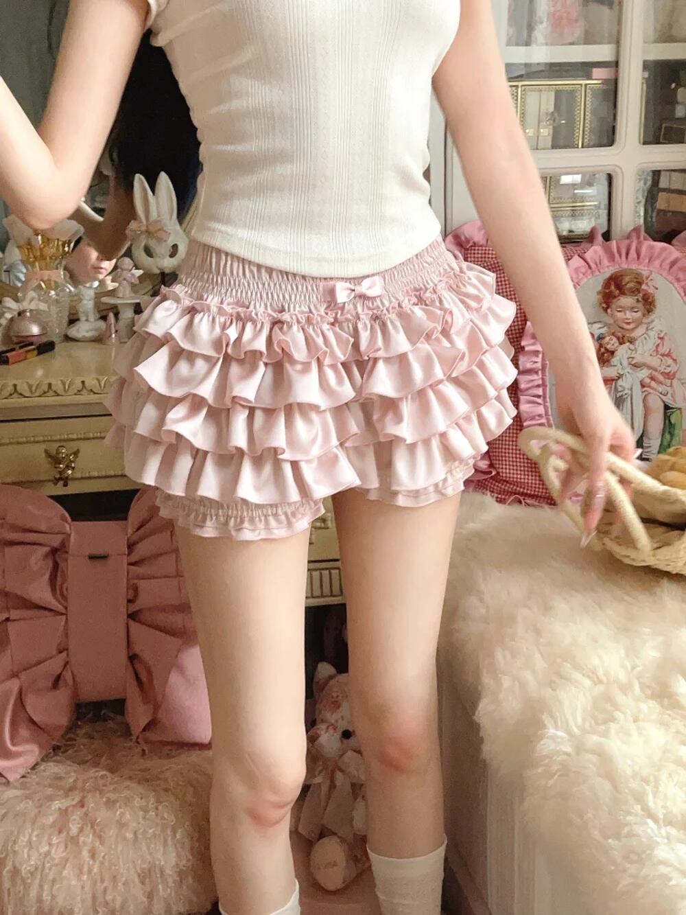 リボン付きの女性用サテンプリーツミニスカート、空中ブランコスカート、ショートライナー、スリム、伸縮性ウエスト、ピンク、カワイイ、かわいいケーキ、ロリータ、女の子、y2k T240925141740_01