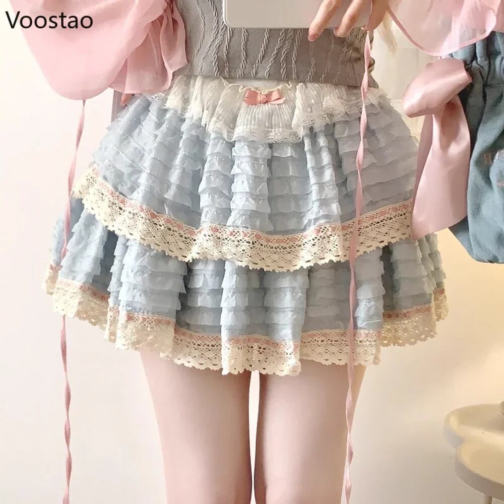 女性のためのレトロなロリータミニスカート,カワイイy2kボウレースのフリル,パーティーフェアリーの短いスカート,韓国のエレガントなケーキスカート,日本の甘い T240925141804_02
