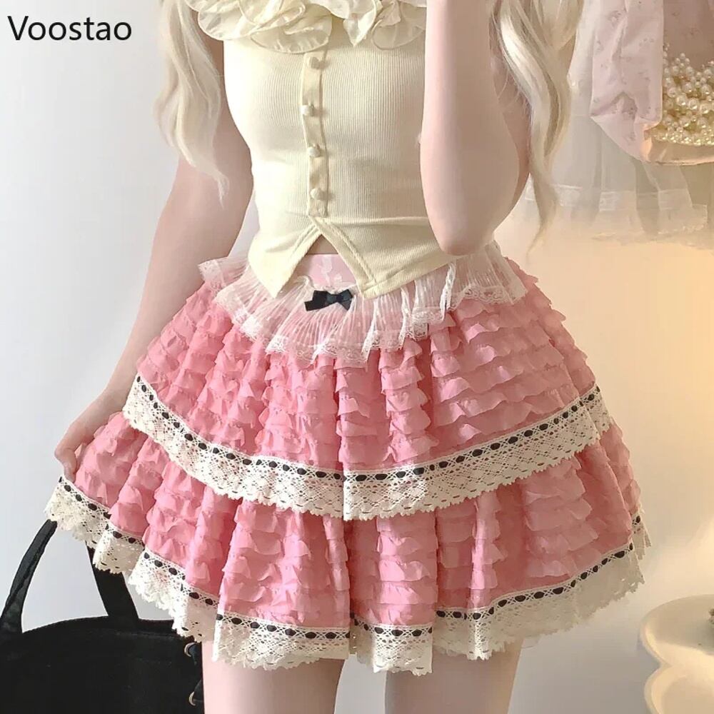 女性のためのレトロなロリータミニスカート,カワイイy2kボウレースのフリル,パーティーフェアリーの短いスカート,韓国のエレガントなケーキスカート,日本の甘い T240925141804_05
