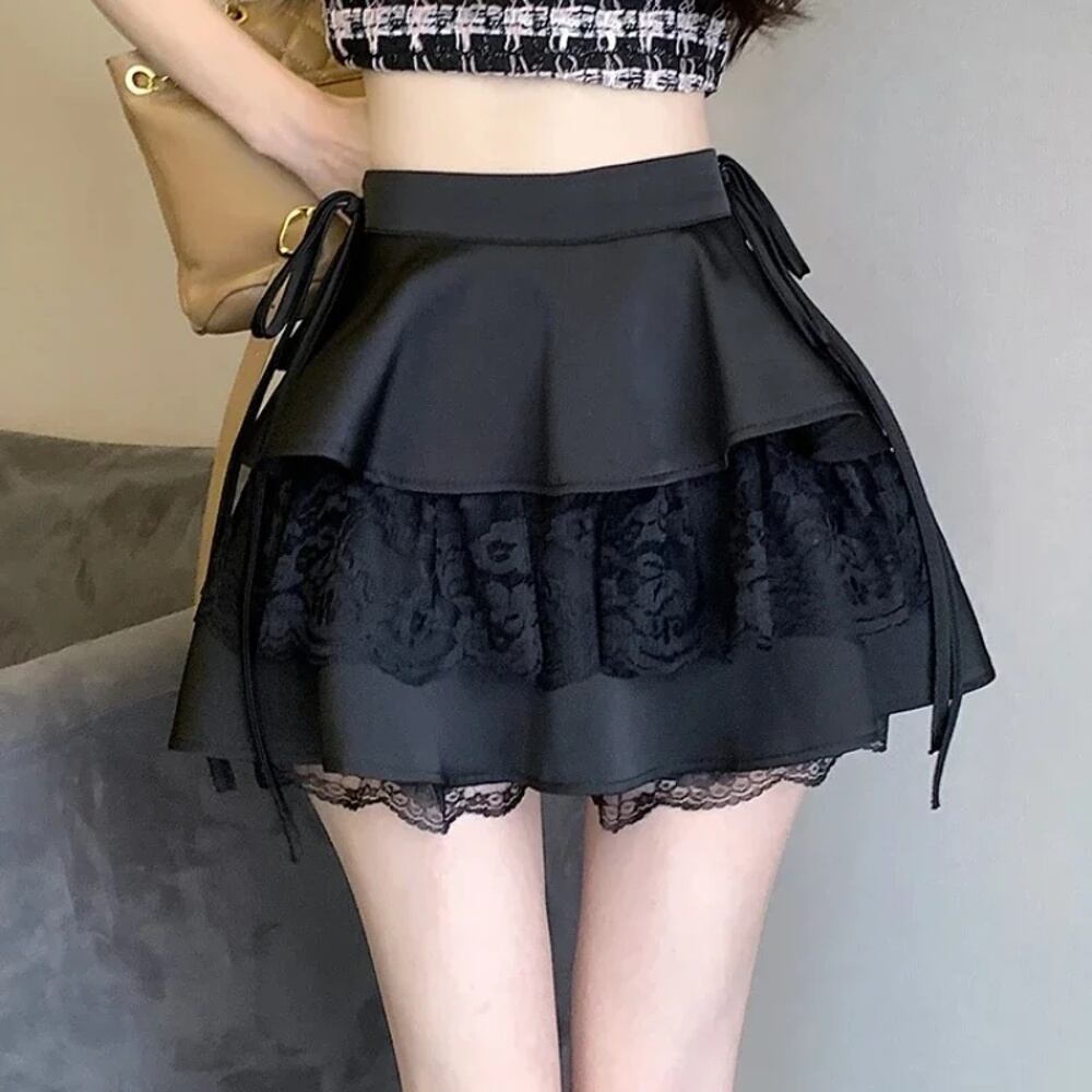 女性用フリルレースミニスカート,ピンク,ダブルレイヤー,キュート,ハイウエスト,包帯,セクシー,ロリータ,ショート,フェアリングコア T240925141928_03