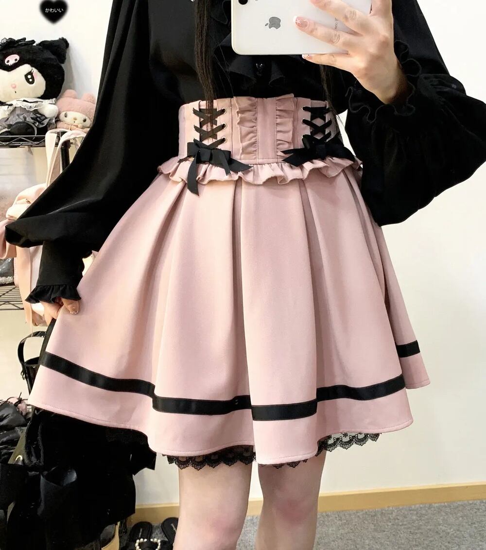 女性のための日本のゴシックロリータスカート,エレガントで愛らしいレースのフリルリボン,バンド,女の子のためのミニスカート,セクシーなかわいいパンクパーティー,y2k T240925141938_02