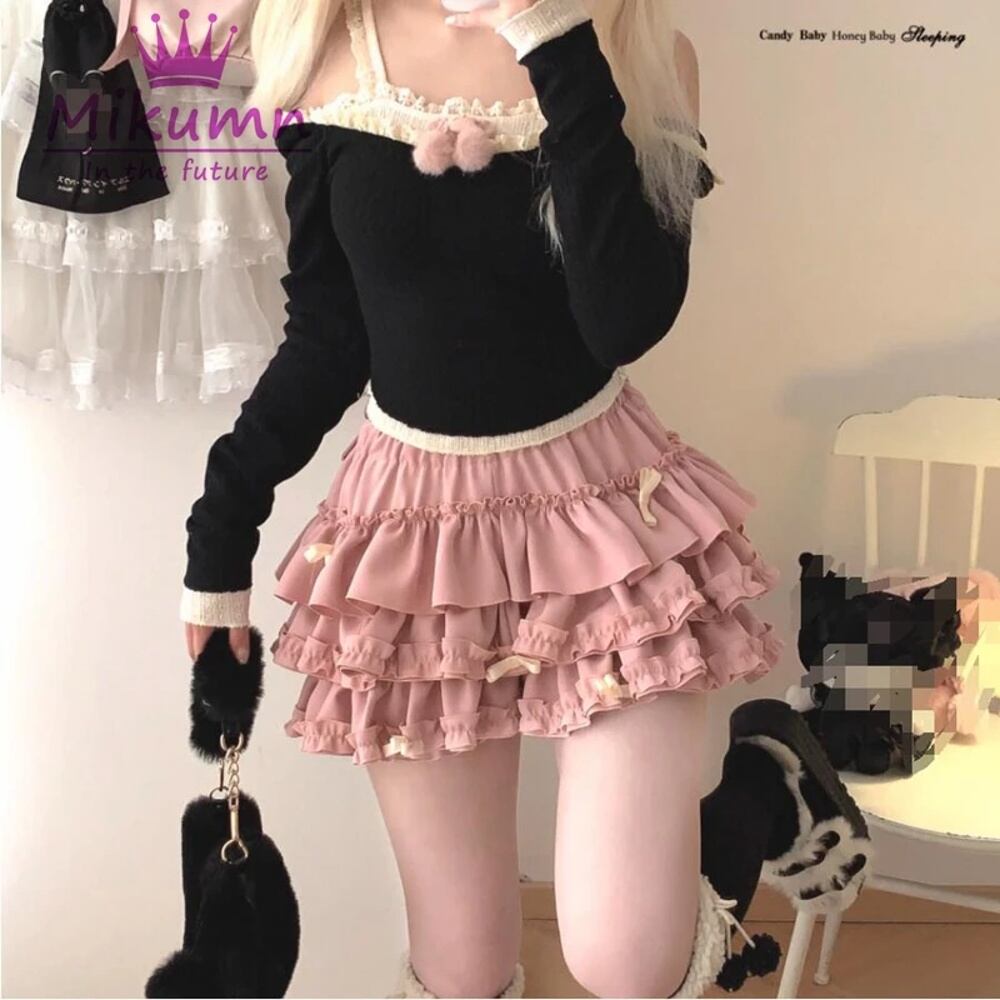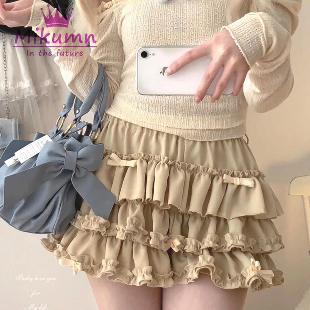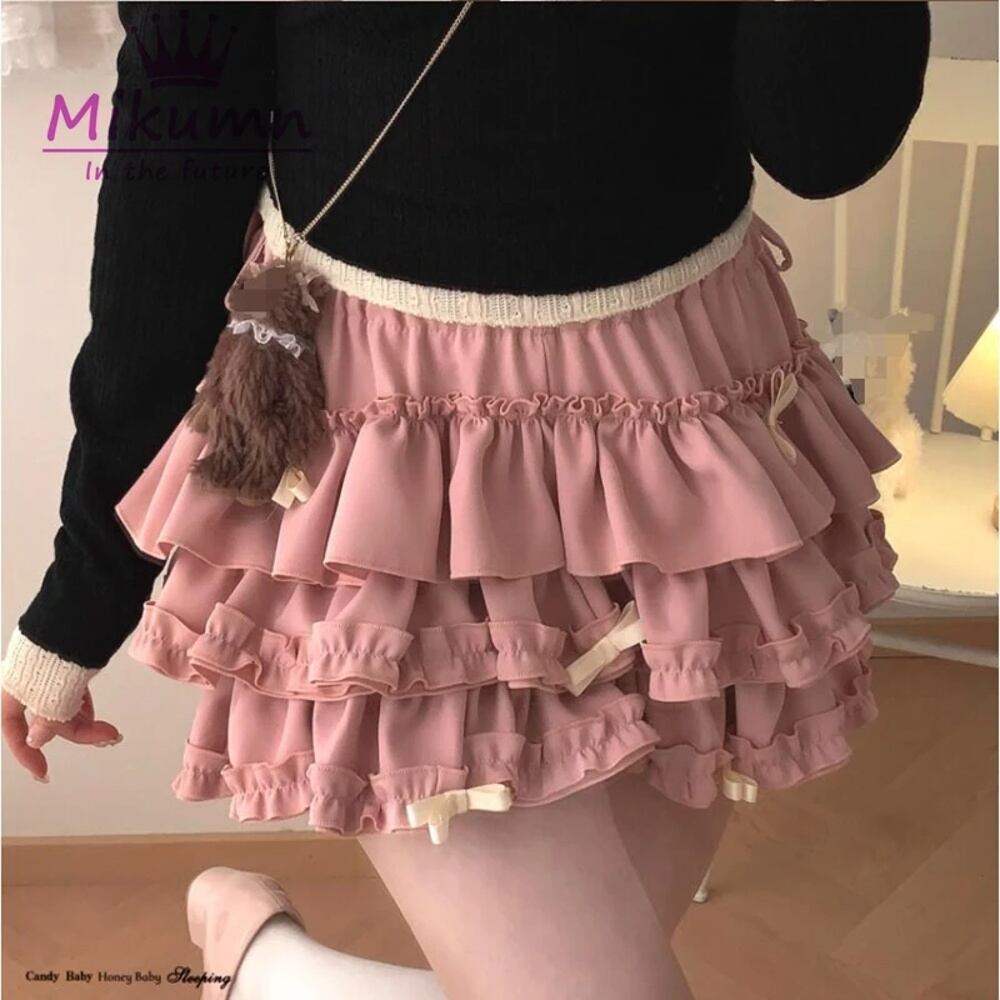 女性用フラウンス付きミニスカート,原宿,日本の愛らしい衣装,伸縮性のあるウエスト,プリーツ付き,ロリータ,カワイイ,ky2k T240925142000_03
