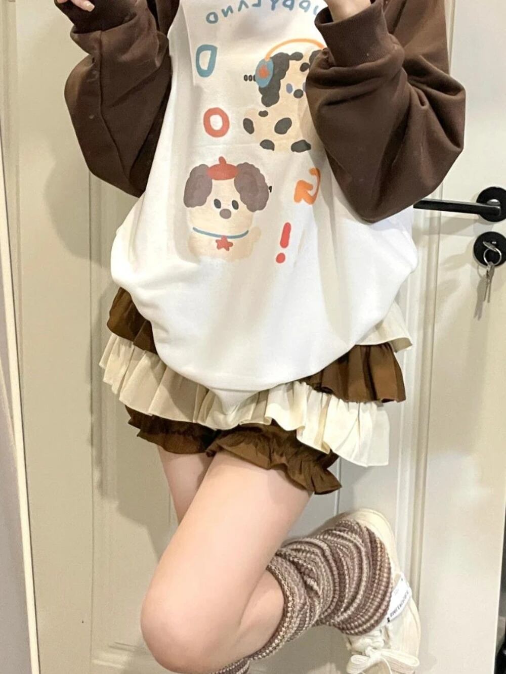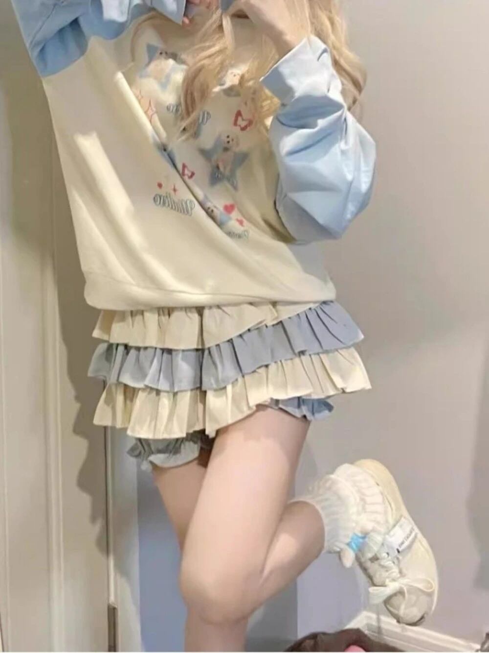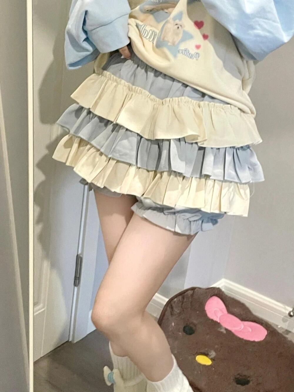 Deeptown-女性用カワイイロリータスカート、ハラジュクフリル、レイヤーハイウエスト、パッチワーク、カッカコレアミニスカート、日本製ショーツ、ソフトガール T240925142043_04