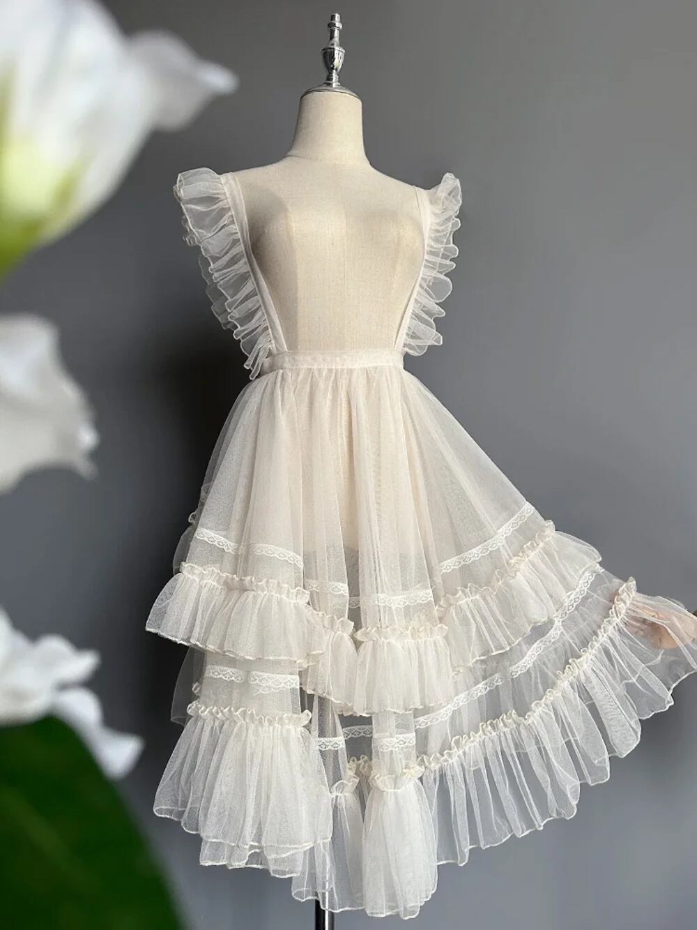 女性用ダブルレイヤーメッシュサスペンダースカート,フリル付き,透明カバーアップ,プリンセスパーティー用,カワイイ,和風,愛らしいロリータスタイル T240925142120_01