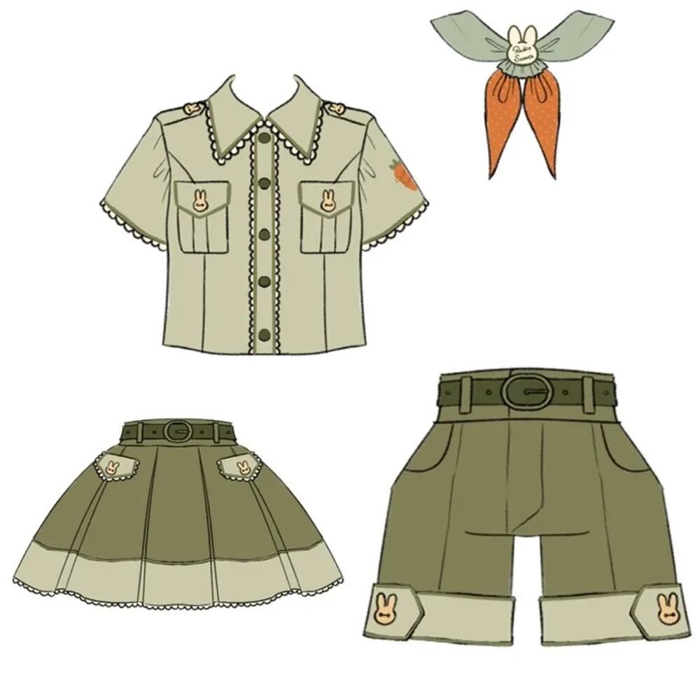 ビットスカウトリロリータのセット,半袖シャツ,刺embroideredレースの装飾,夏 T240925142345_01