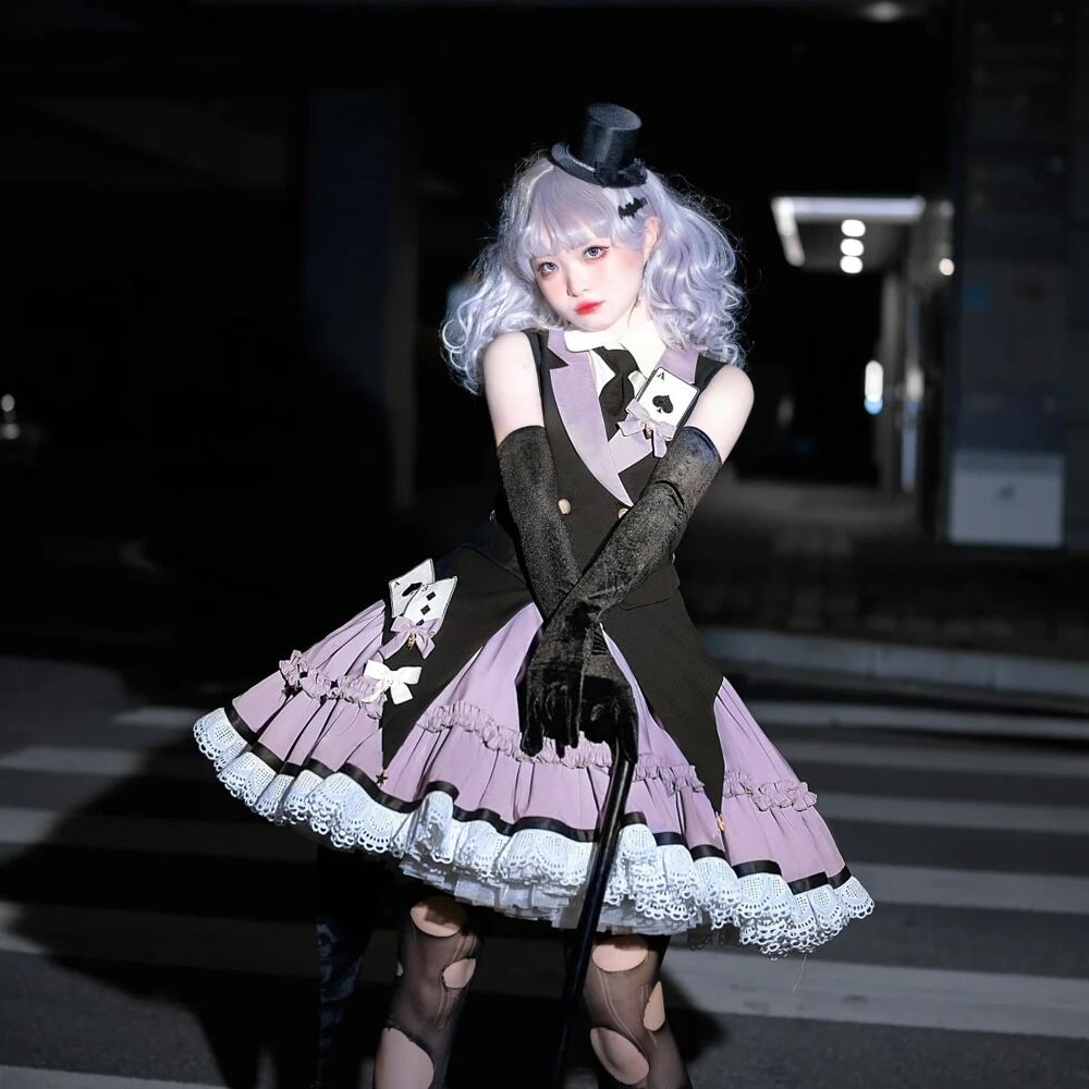 女性のロリータゴシックブラウスとスカートのセット、フリルのレースアップドレス、愛らしい制服、夏、セクシー、日本のスタイル T240925142356_01