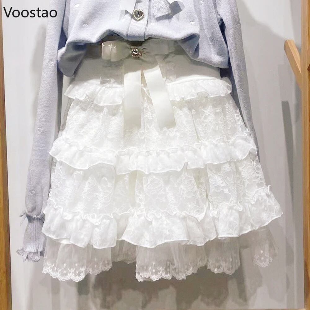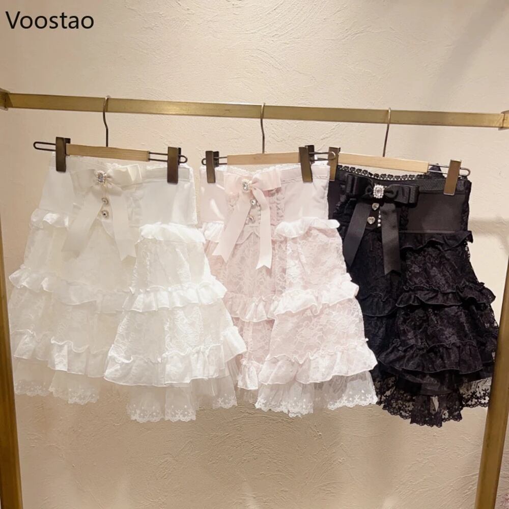 女性のためのゴシックロリータスタイルミニスカート、レースボウ、フリル、ショートスカート、Aライン、ケーキスカート、エレガントで甘い、キュート、日本、y2k T240925143118_02