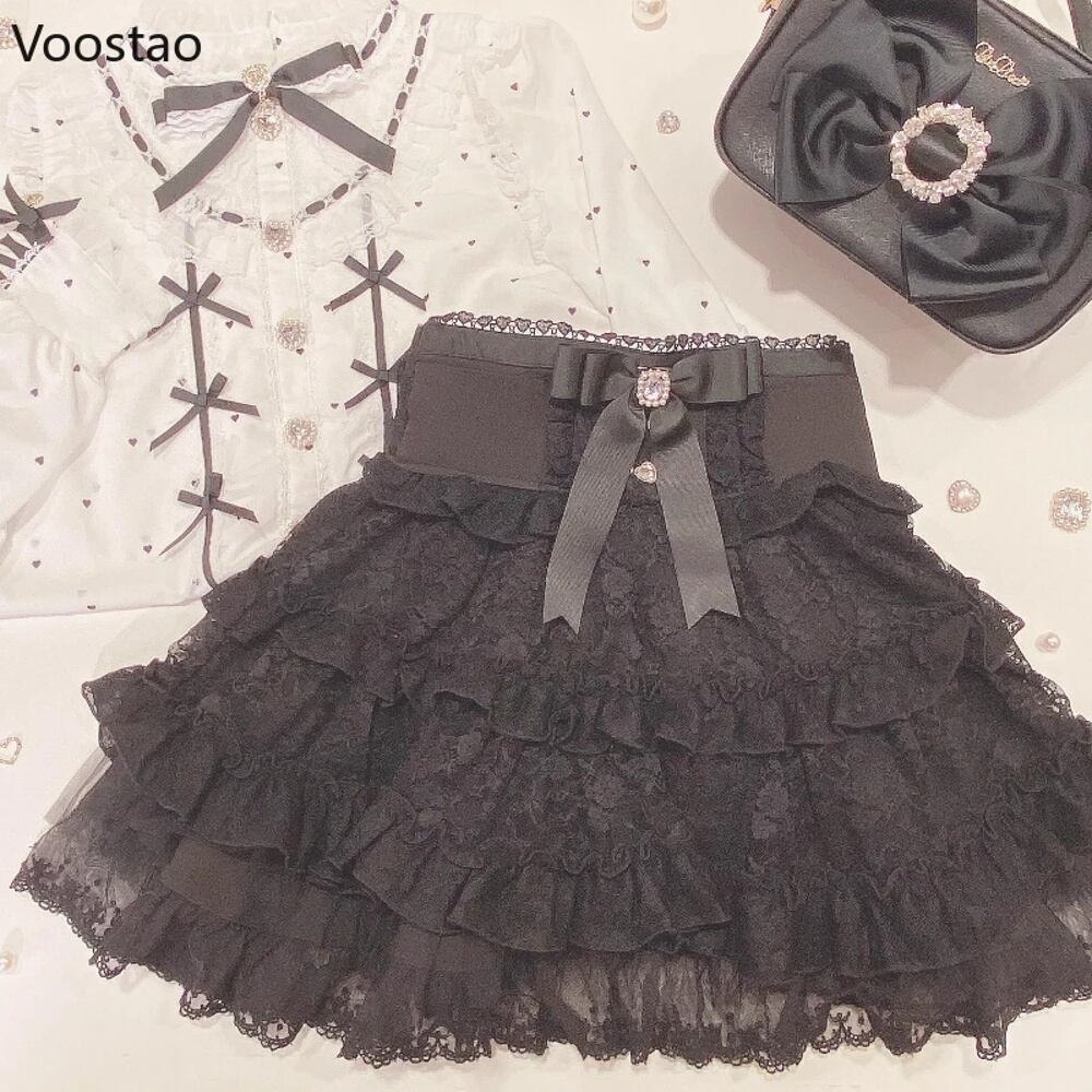 女性のためのゴシックロリータスタイルミニスカート、レースボウ、フリル、ショートスカート、Aライン、ケーキスカート、エレガントで甘い、キュート、日本、y2k T240925143118_03