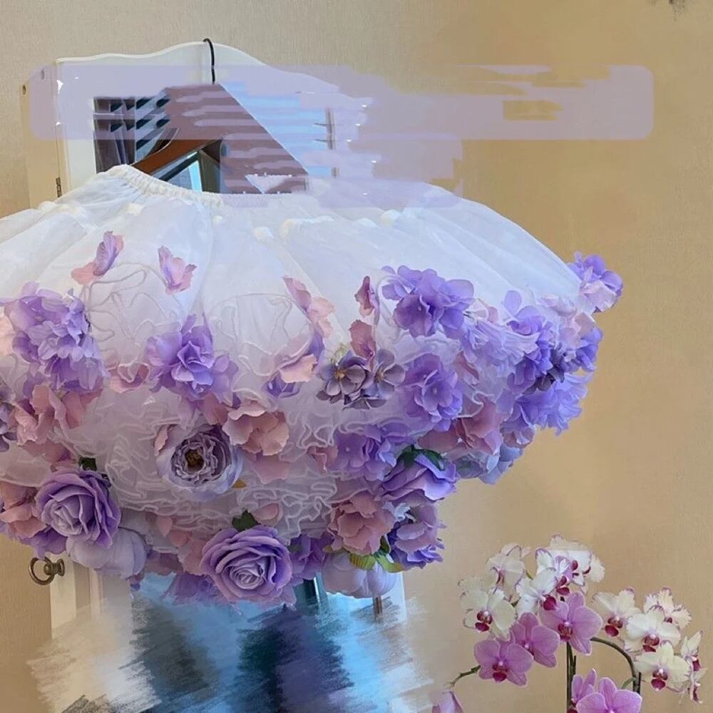 女性のオーガンザミディスカート、花のクリノリン、バブルスカート、愛らしい、ロリータ、エレガント、フレンチガール、ゴージャス、春と夏、2024 T240925143141_02
