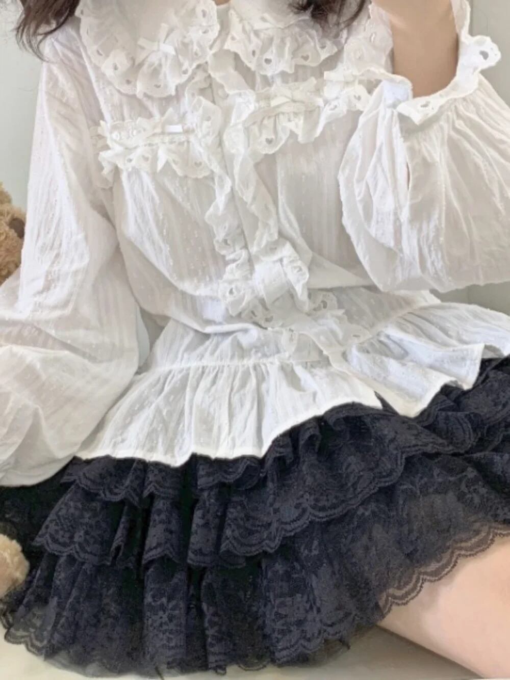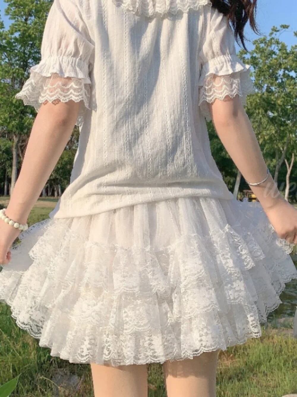 女性の美的レースパッチワークガーゼスカート、甘いロリータボールガウン、カワイイ、ソリッド、キュート、秋、y2k、2024 T240925143150_01