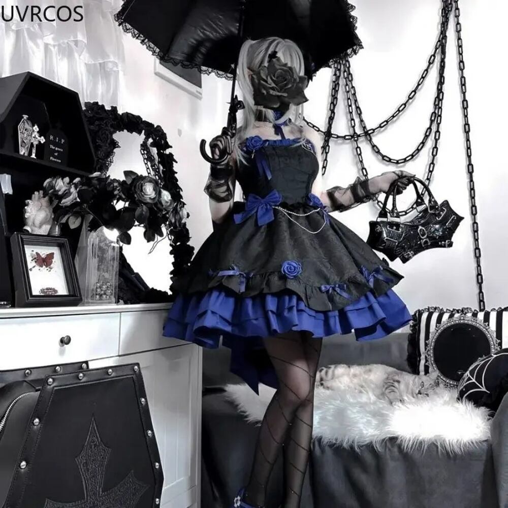 ビクトリア朝のゴシックロリータのドレス、ヴィンテージ、エレガントな、バラの花、弓、王女のストラップのドレス、甘い、ティーパーティー T240925143154_01