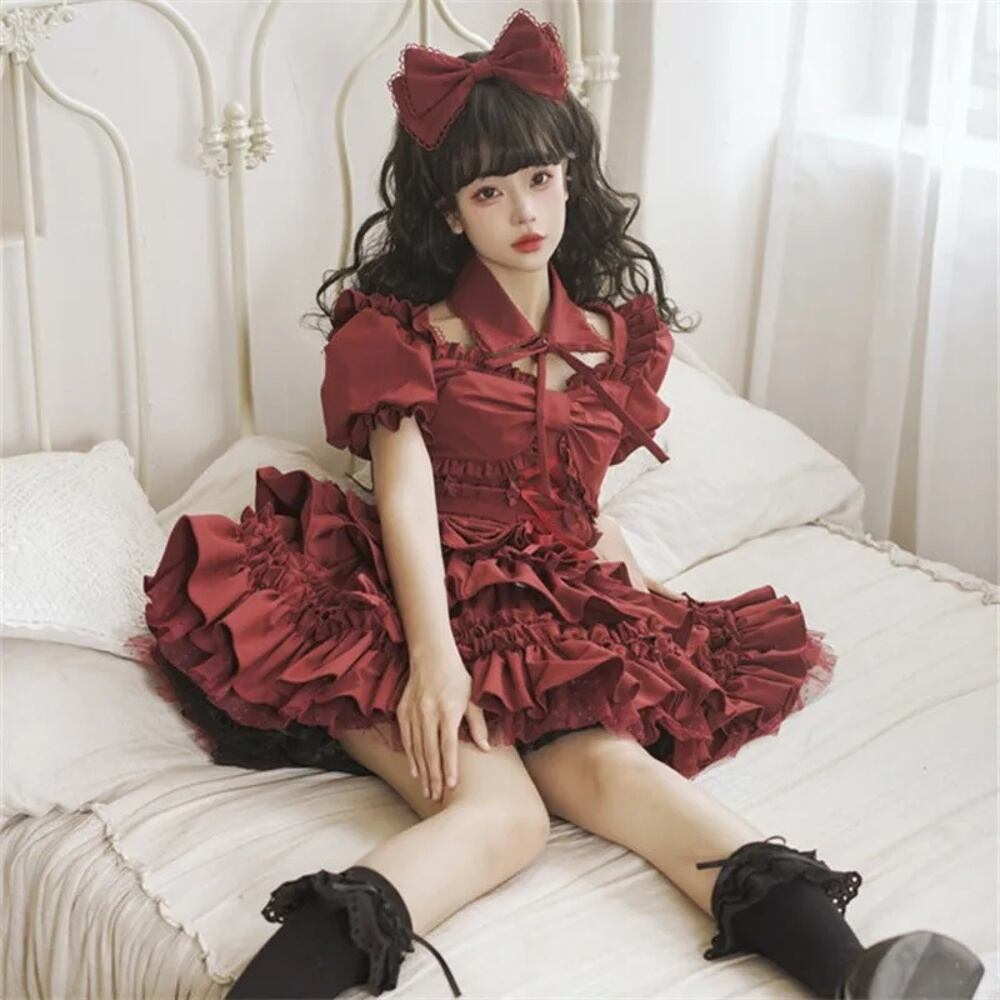 女性のための和風ロリータセット,ゴシックスタイル,ブラウス,スーツ,セクシー,ロリータドレス,フリル,レースアップ,偽の襟,トップ,夏 T240925143405_02