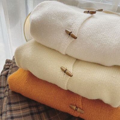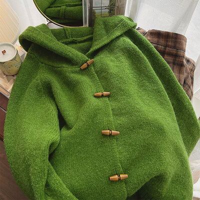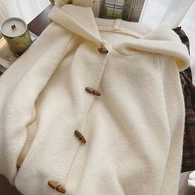 【 3日出荷 】カーディガン 2024 秋新韓国 ニットカーディガン 百掛け 牛角ボタン連帽ニットカーディガン レディースファッション