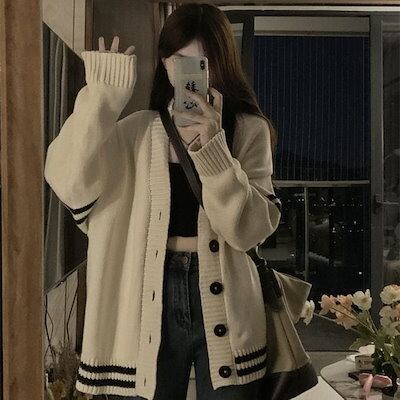 【 3日出荷 】カーディガン 2024 秋新韓国 ニットカーディガン 百掛け 秋冬カレッジ風カラーニットコート学生ゆったりニットカーディガン レディースファッション