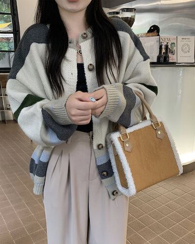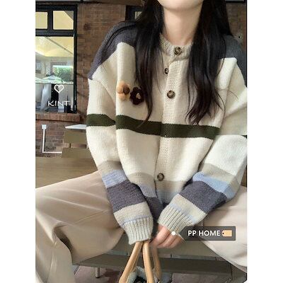 【 3日出荷 】カーディガン 2024 秋新韓国 ニットカーディガン 百掛け ぶつけ色ストライプセーター秋冬レトロ ニットカーディガンコート レディースファッション