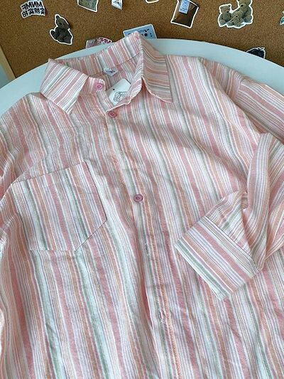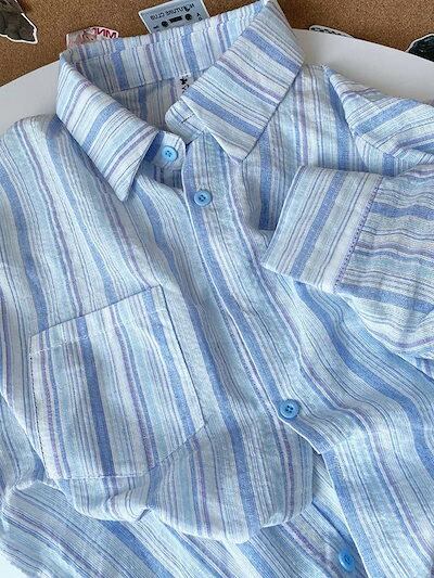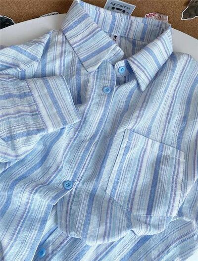 シャツ 長袖 2024 秋 新ブラウス ストライプシャツの女性 と秋モデル緩いカジュアルシャツ