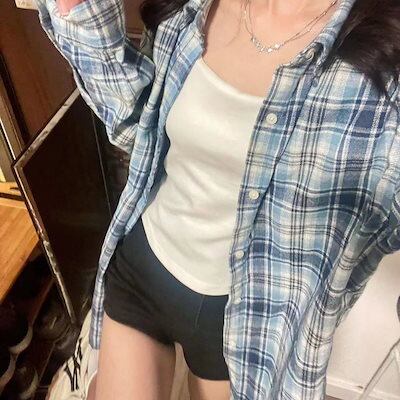 シャツ 長袖 2024 秋 新ブラウス チェック柄シャツジャケットカジュアルミドルレングスシャツ