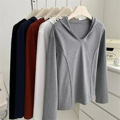パーカー トップス レディース 秋 スウェット 無地 フード付き Vネック 長袖 綿混 コットン プルオーバー 綿 ゆったり 体型カバー おしゃれ きれいめ カジュアル シンプル ナチュラル 韓国風