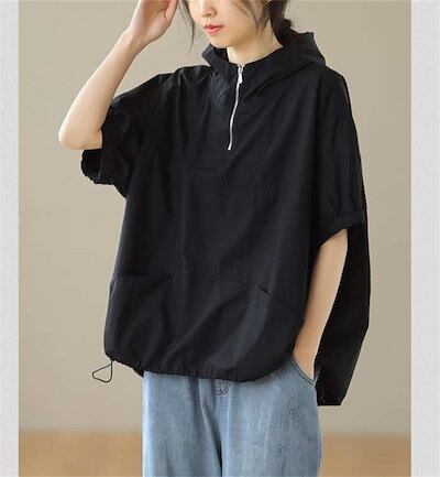 パーカー レディース 半袖 tシャツ 夏 ゆったり ビッグシルエット 薄手 綿 無地 スウェットフードパーカー トップス 半袖パーカー トレーナー おしゃれ フード付き プルオーバー 大きいサイズ 体