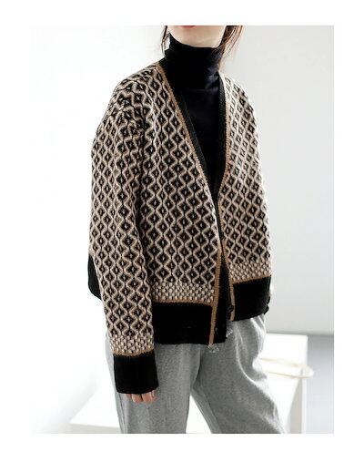 ニットカーディガン セーター チェック柄 羽織 Vネック カーディガン 長袖 ニット レディース トップス 暖かい 厚手 ゆったり シンプル カジュアル リブ パールボタン 柔らかい お洒落 上品 女