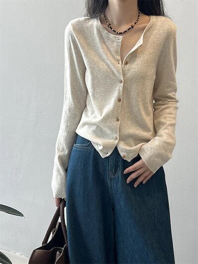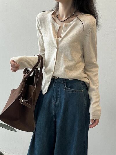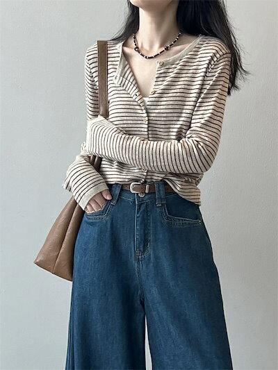 ニットカーディガン ニット レディース カーディガン セーター 羽織り ボーダー柄 無地 クルーネック 丸首 長袖 前開き カットソートップス 春秋 冬 お洒落 きれめ アウター シンプル カジュアル