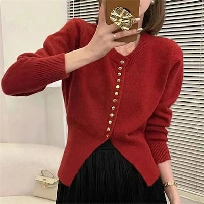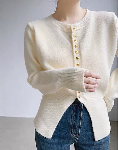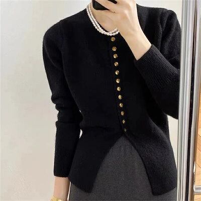 ニットカーディガン ニット レディース セーター ニットセーター 長袖 クルーネック 羽織り 前開き ニットカーデ カットソー 無地 アウター シンプル カジュアル 通勤 OL オフィス 普段着 長袖
