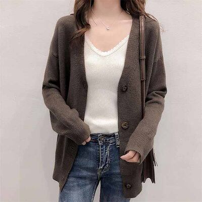 ニットカーディガン カーディガン ニット ざっくり編み カーデ ロングカーディガン コート レディース アウター ロングニットセーター とろみ ショート ゆったり 柔らか カジュアル 春 秋 冬