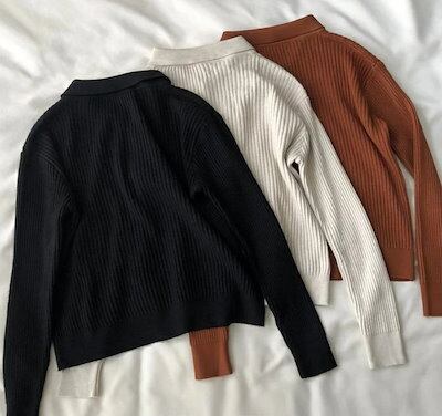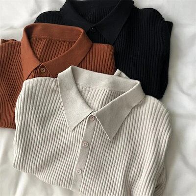 ニットカーディガン リブニット セーター レディース カーディガン ニット リブ カットソー ニットセーター 秋冬 長袖 無地 前開き 折襟 アウター 羽織 ゆったり 体型カバー カジュアル オフィス
