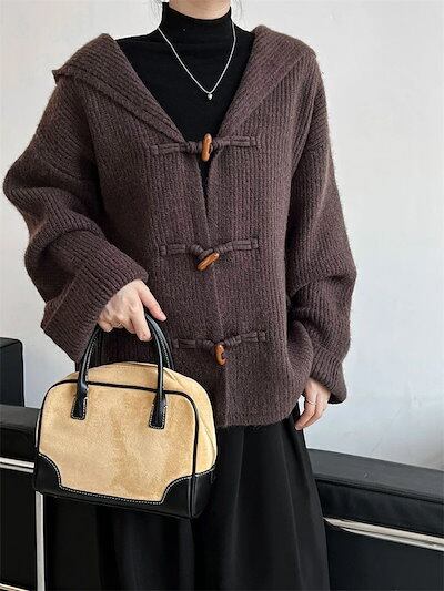 ニットカーディガン ニット カーディガン レディース フード付き 秋 冬 vネック 長袖 前開き 羽織 無地 トップス アウター リブニット リブ カットソー ゆったり 体型カバー 着?せ カジュアル