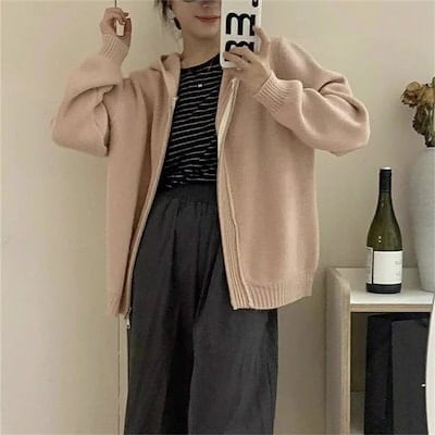 ニットカーディガン ニット カーディガン レディース セーター ニットセーター カットソー トップス ダブルジップセーター 長袖 フード付き 秋 冬 秋冬 前開き 羽織 無地 アウター ダブルジップ