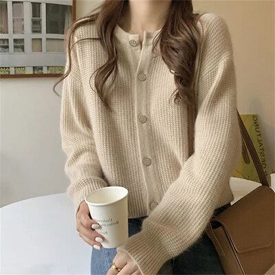 ニットカーディガン ニット ーディガン レディース 秋冬 ショート丈 クルーネック 前開き 羽織 丸首 長袖 ボタン ニットセーター セーター カットソー トップス リブニット リブ アウター シンプ