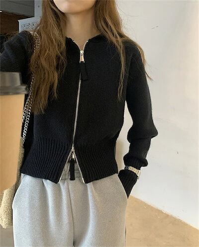 ニット ニットカーディガン セーター レディース ニットセーター カットソー 長袖 フード付き 前開き 羽織 無地 ダブルジップ ジップ 秋冬 カーディガン トップス チュニック アウター カジュアル