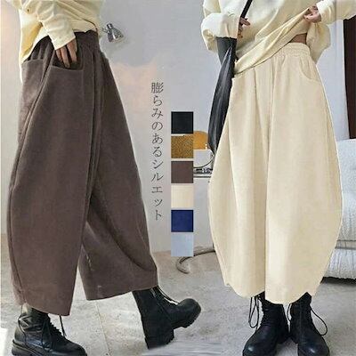 バルーンパンツ レディース ワイドパンツ ロング ウエストゴム コクーンパンツ ポケット付き 美脚 パンツ ボトムス 秋 ロング丈パンツ 長ズボン ゆったり 9分丈 春秋 体型カバー 大きいサイズ パ