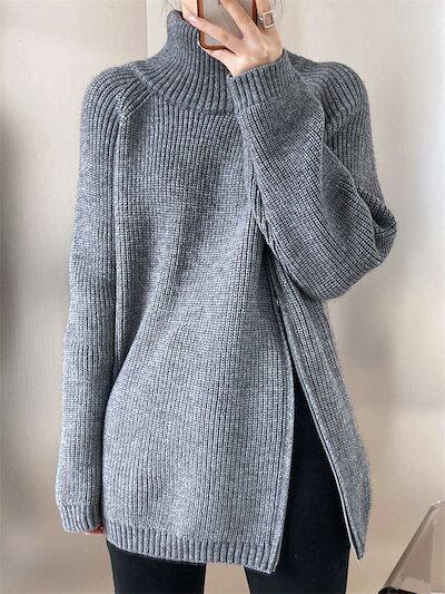 変形ジップアップニット ニット セーター レディース 秋冬 トップス 長袖 セーター リブニット リブ ハイネック ジップアップ アシンメトリー 変形 レイヤード 無地 モード系 個性的 大人 ビッグ