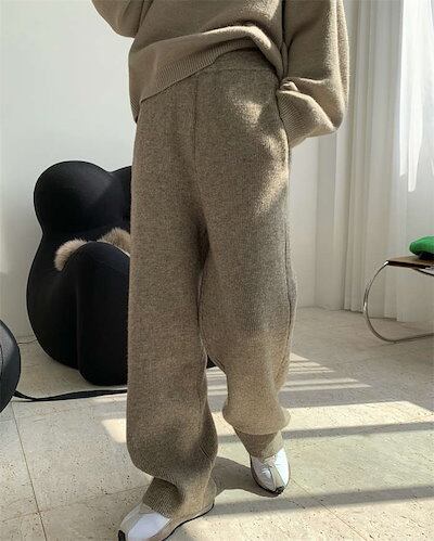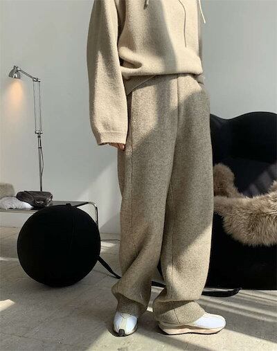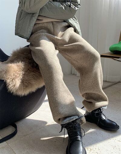 ニットパンツ レディース リブパンツ ウールパンツ ワイドパンツ リブニット ワイドパンツ ウエストゴム リブニットパンツ 春 冬 厚手 リブ ストレートパンツ イージーパンツ 楽ちん ブラック ロン