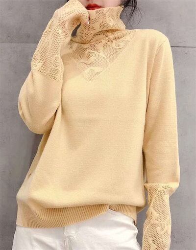 ニットセーター レディース ニットソー レース 無地 長袖 ハイネック 切り替え ニットウェア ゆったり おしゃれ トップス レースセーター オシャレ オフィス 着痩せ 大人 可愛い 大人 お出かけ