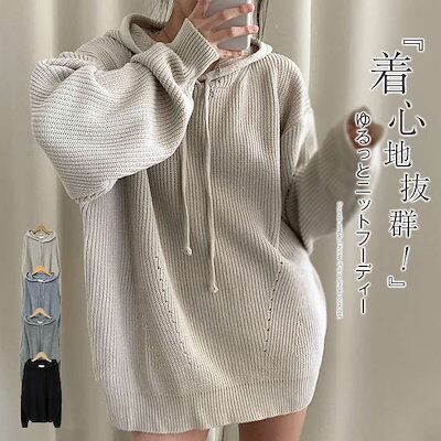 ニットパーカー ニットセーター レディース 秋 冬 ニット 長袖 洗えるニット フード付き トップス 無地 お洒落 シンプル 体型カバー 上品 フードパーカー フーディー レディース トップス シンプ
