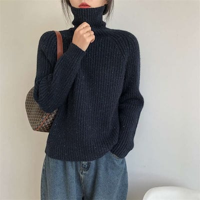 ニット タートルネック レディース リブ リブニット セーター 厚手 トップス ニット 長袖 無地 トップス リブ れいめ ニットセーター ハイネック セーター 体型カバー ハイネック ビッグシルエッ