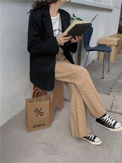 ニットパンツ レディース 秋冬 ニット ワイドパンツ きれいめ ケーブル編み 可愛い ゆったり ニットパンツ ワイド パンツ ロングパンツ 秋 冬 ケーブル リラックスパンツ ボトムス 無地 体型カバ