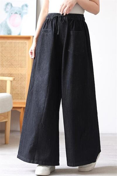 デニムパンツ レディース 春 秋 デニムワイドパンツ パンツ ワイドパンツ 大きいサイズ パンツ コットン 大人の楽ちん 美ゆる ゆったり デニム ワイドパンツ オリジナル デニムパンツ ゆったり カ