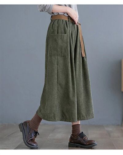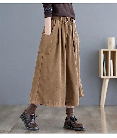 キュロットスカート コーデュロイ ワイドパンツ パンツ レディース 秋冬 ワイド 七分丈 クロップド イージーパンツ 無地 プリーツ ポケット付き ズボン ボトムス 大きいサイズ 体型カバー 着?せ