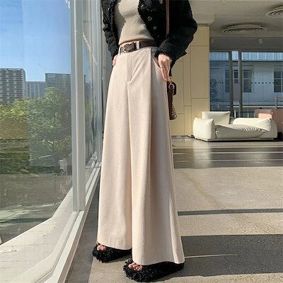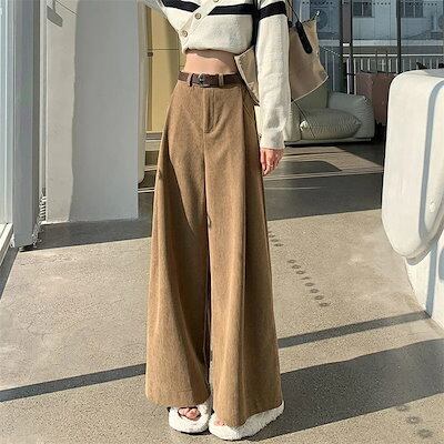 ワイドパンツ パンツコーデュロイ レディース 裏起毛 ストレートパンツ コーデュロイパンツ 裏起毛パンツ コーデュロイ ストレート 秋冬 ウエストゴム ボトムス ズボン 大きいサイズ ゆったり 体型カ