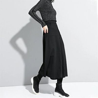 ワイドパンツ パンツ レディース 秋 冬 ボトムス 七分丈 ドレープ ストレッチ ロングパンツ デザインパンツ 無地 モード ファッション かっこいい ウエストゴム ズボン メンズ ユニセックス 大き