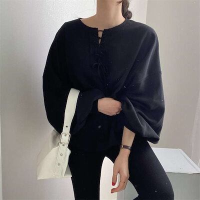 スウェット レディース きれいめ トレーナー 秋 春 長袖 キーネック Tシャツ カットソー 長袖 大きめ ゆったりトップス 体型カバー シンプル カジュアル 大きいサイズ ゆるっと ビッグシルエット
